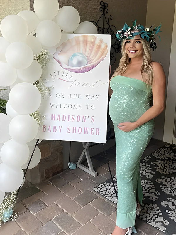 Momyknows Mint Green Sequins Wrap Back Slit Baby Shower Maternity Maxi Dress