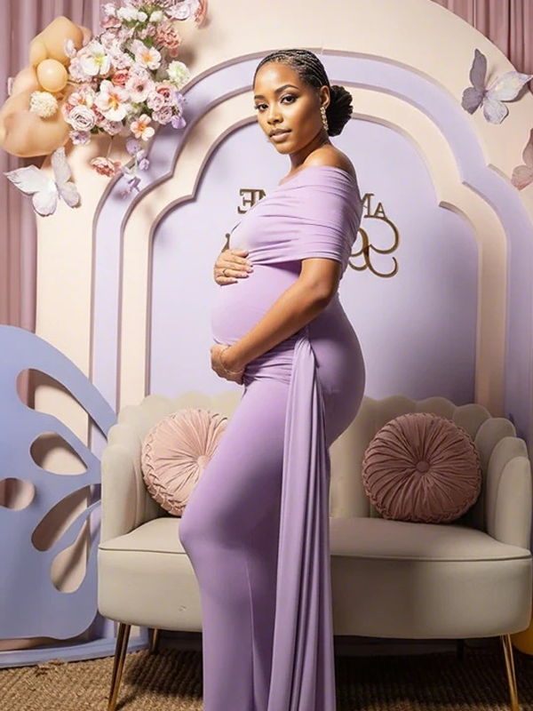Momyknows Purple Shawl Silk Grenadine Baby Shower Maternity Maxi Dress