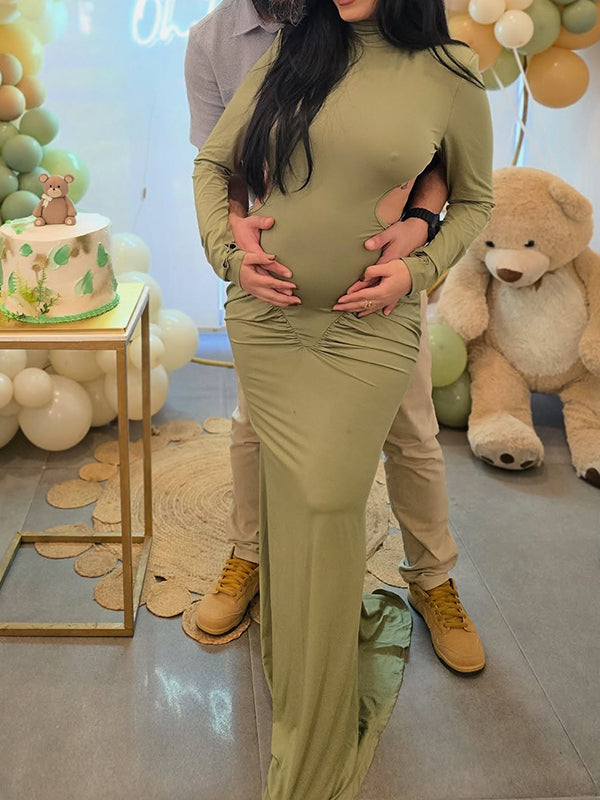Momyknows Cut Out Ruched Backless Mermaid Elegant Maternity Maxi Dress