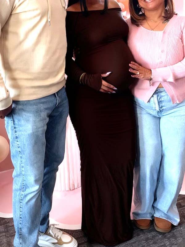 Momyknows Off Shoulder Ruched Bodycon Maternity Baby Shower Maxi Dress