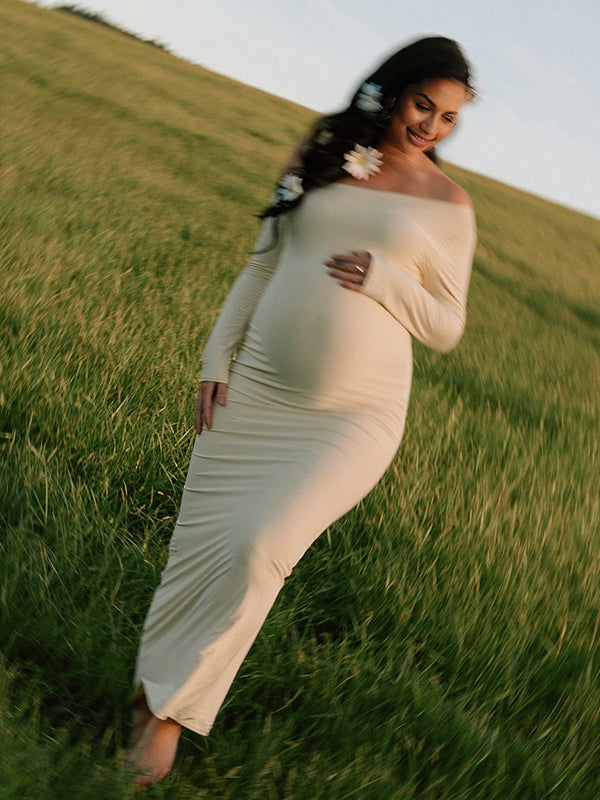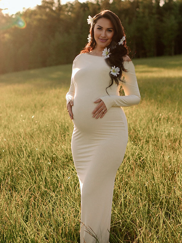 Momyknows Solid Color One Shoulder Ruched Bodycon Maternity Maxi Dress