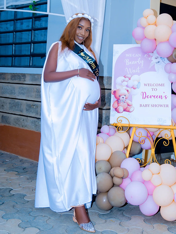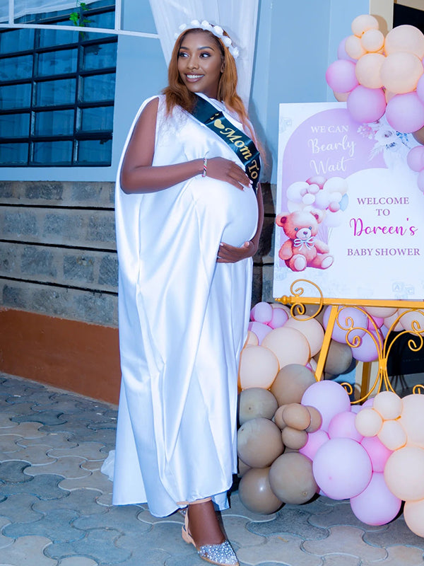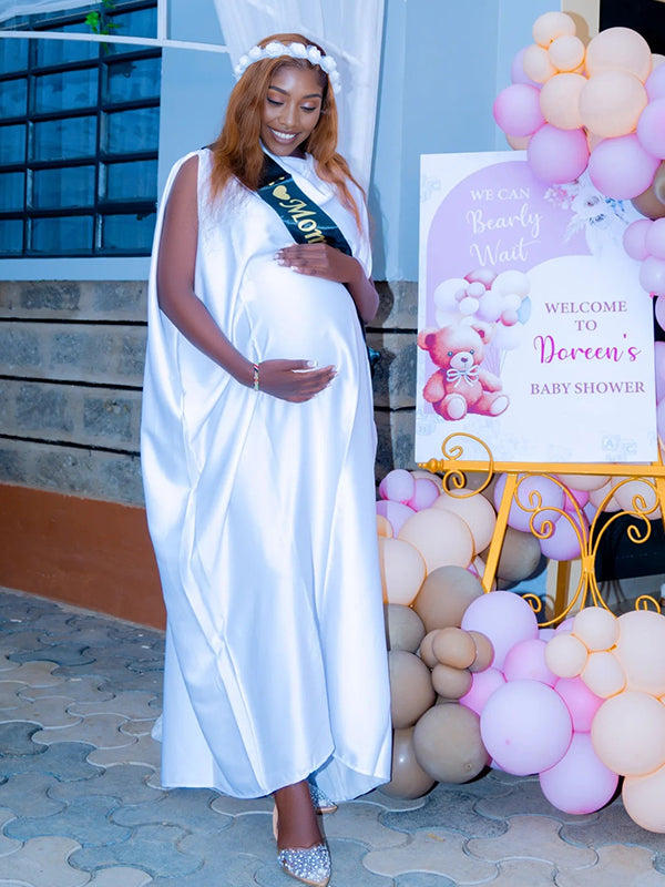 Momyknows White Oversize Zipper Maternity Baby Shower Maxi Dress