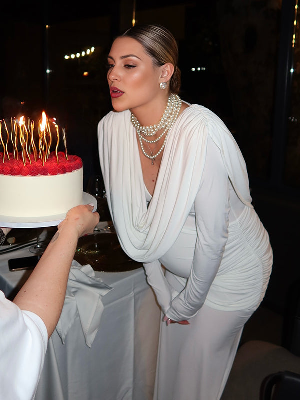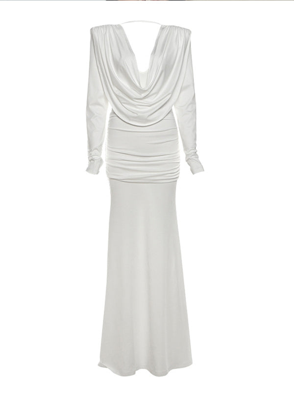 Momyknows White Ruched Backless Cowl Neck Mermaid Maternity Maxi Dress