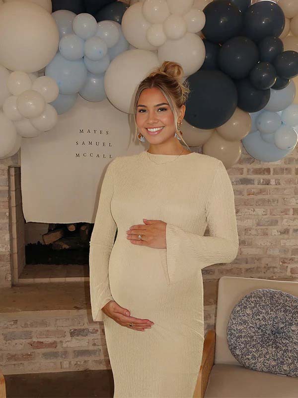 Momyknows Elegant Long Sleeve Maternity Dress Ultimate Baby Shower Outfit White Bodycon Dress