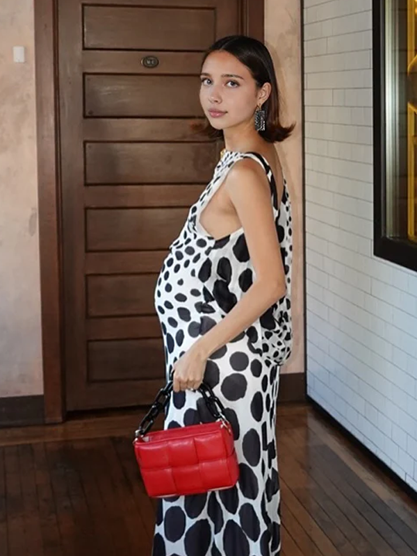Momyknows Black Polka Dots Backless Ruched Maternity Photoshoot Maxi Dress