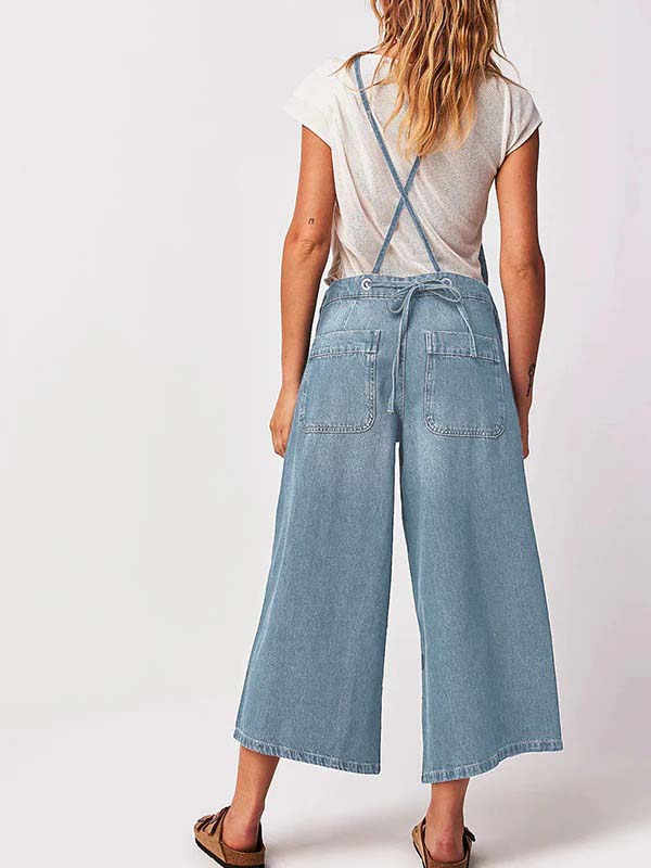 Momyknows Denim Pockets Wide Leg Comfy Overalls Casual Boyfriend Maternity Jeans Jumpsuit