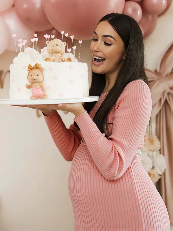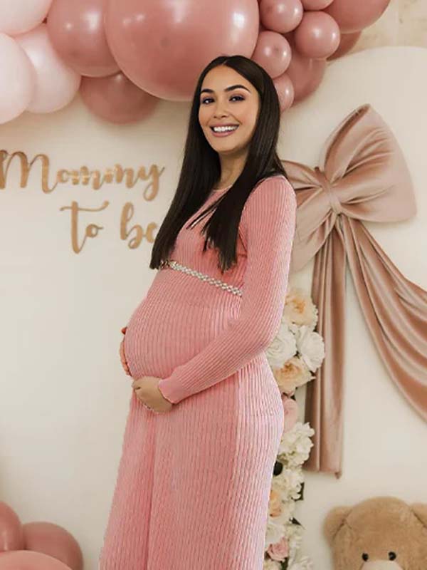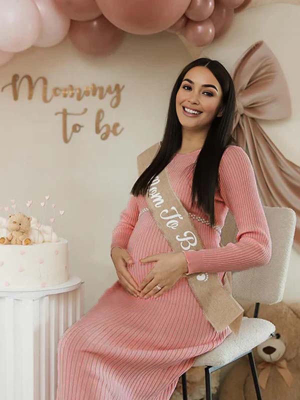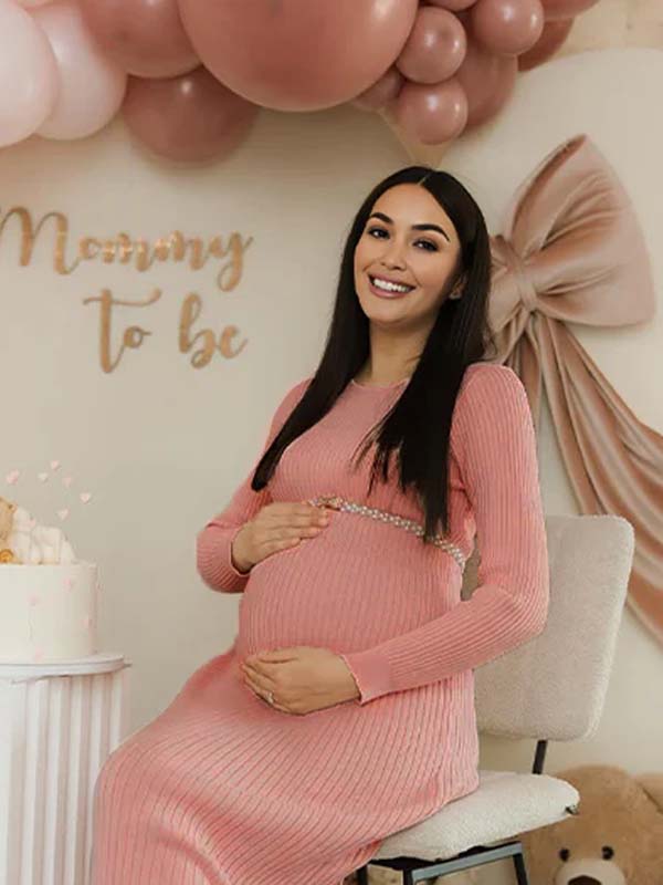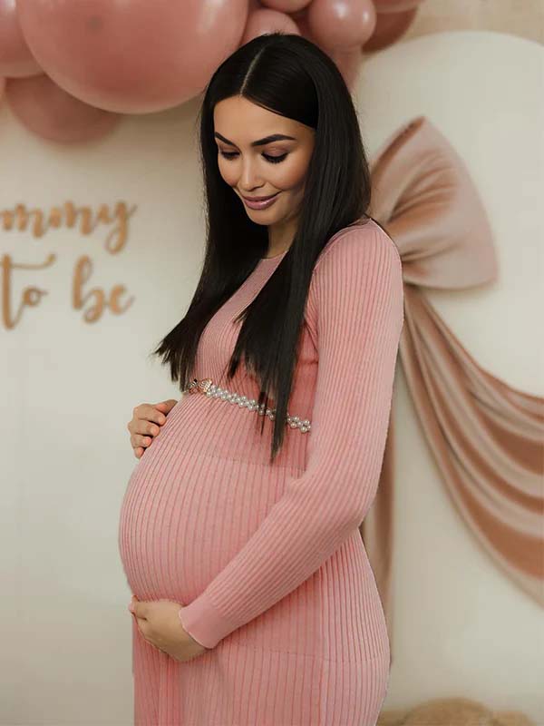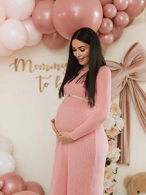 Momyknows Pink Ruffle Baby Girl Shower Maternity Maxi Sweater Dress