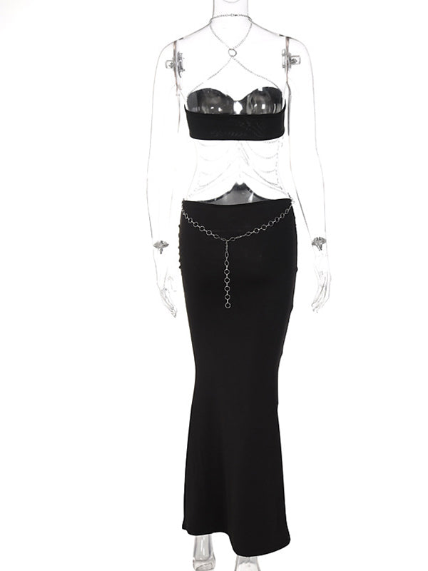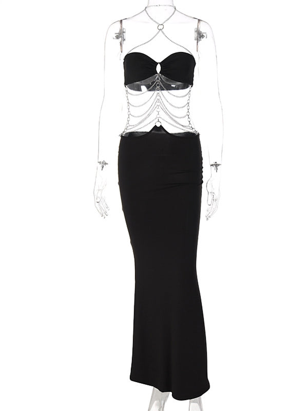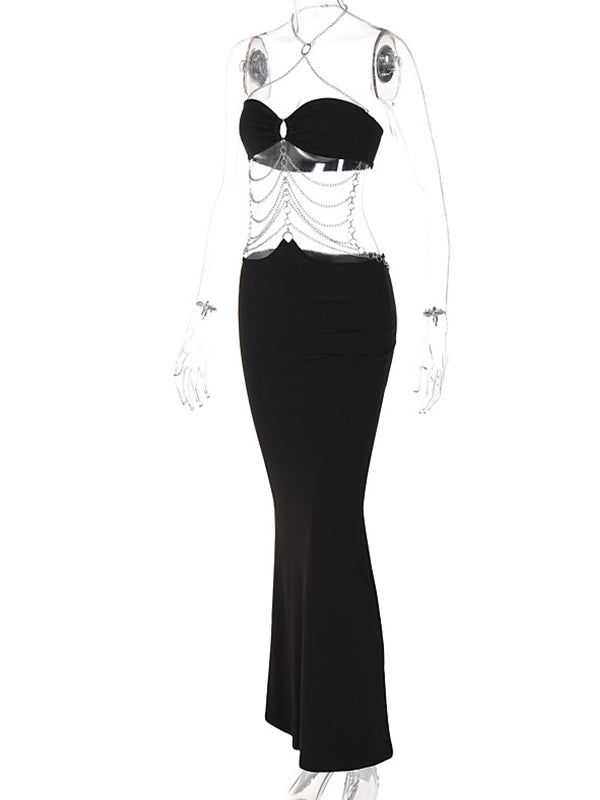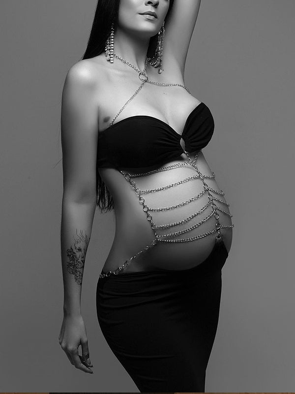 Momyknows Black Cut Out Chain Halter Neck Bodycon Photoshoot Elegant Maternity Maxi Dress
