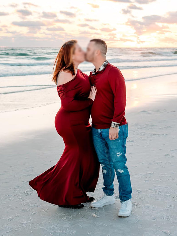 Momyknows Solid Color One Shoulder Ruched Backless Bodycon Mermaid Evening Cocktail Party Gown Babyshower Maternity Maxi Dress
