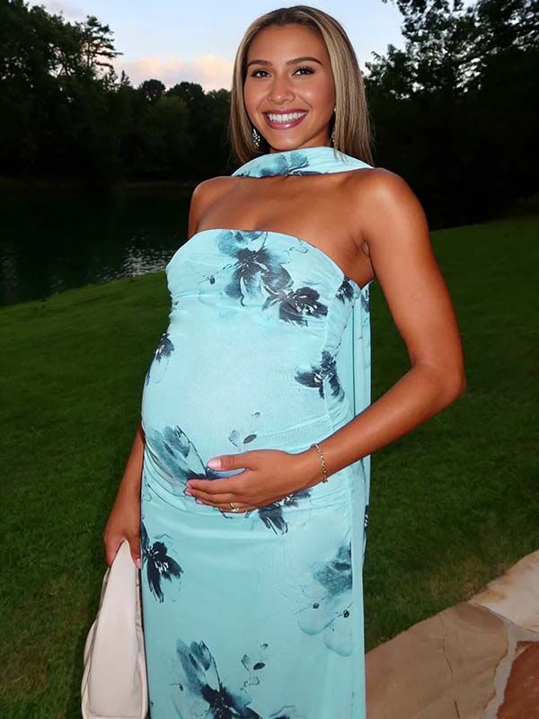 Momyknows High Neck Square Shoulders Bodycon Maternity Photoshoot Maxi Dress