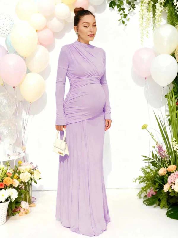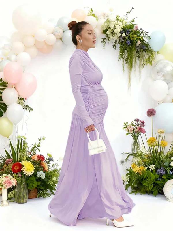 Momyknows Ruched Draped Baby Shower Maternity Maxi Dress