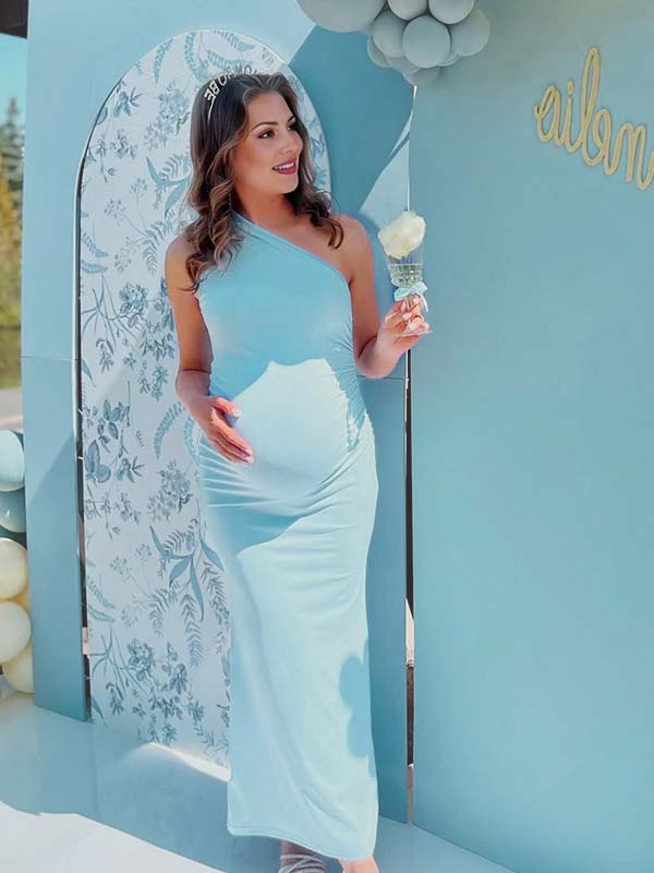 Momyknows Ruched One Shoulder Bodycon Elegant Maternity Maxi Dress
