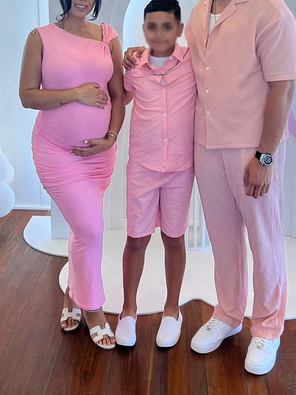 Pink Bowknot One Shoulder Elegant Maternity Baby Shower Maxi Dress
