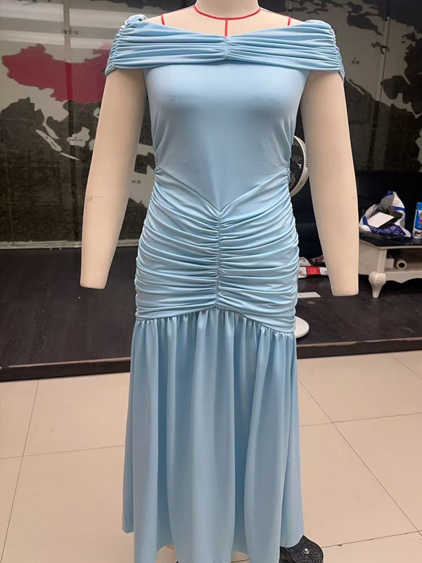 Momyknows Off Shoulder Draped Hem Ruched Backless Maternity Baby Shower Maxi Dress