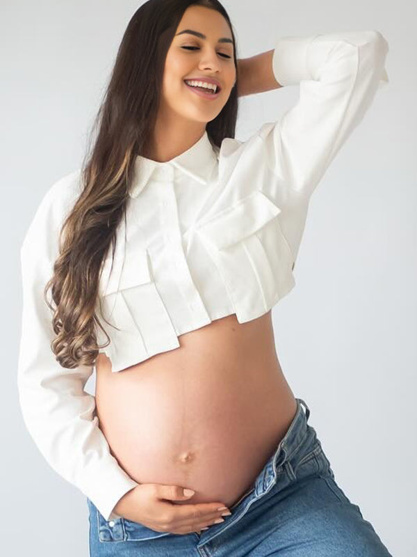 Momyknows White Splicing Shirt Photoshoot Maternity Top