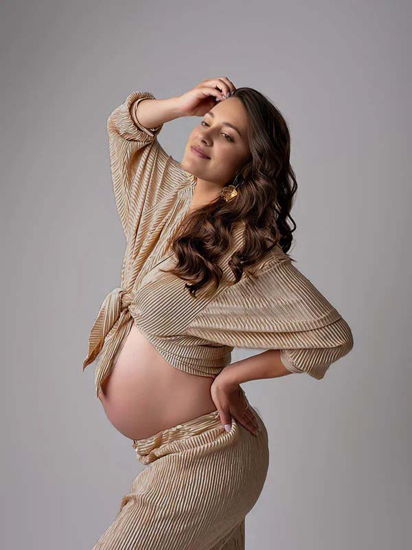 Momyknows Apricot Irregular Ruched Crop Wide Leg DIY Two Piece Set Maternity Outfit