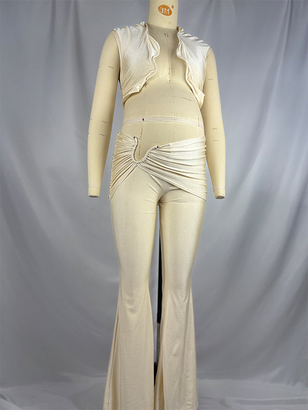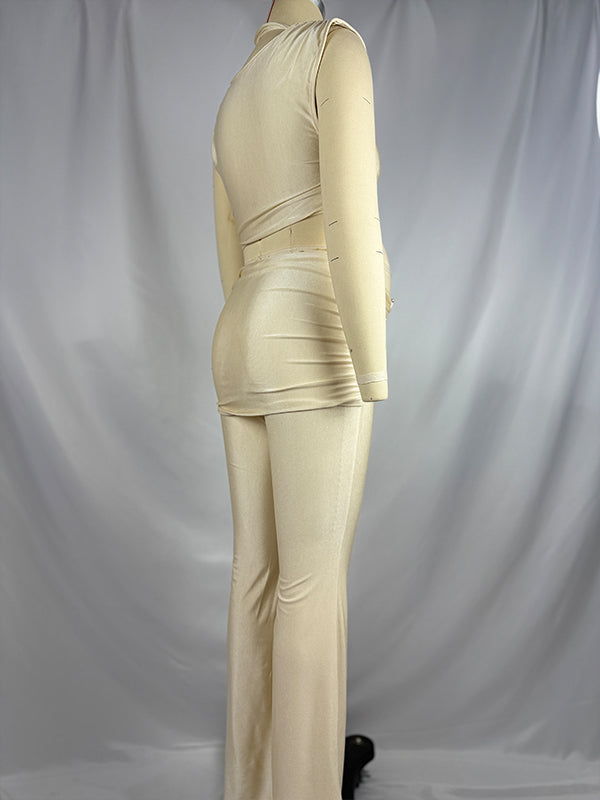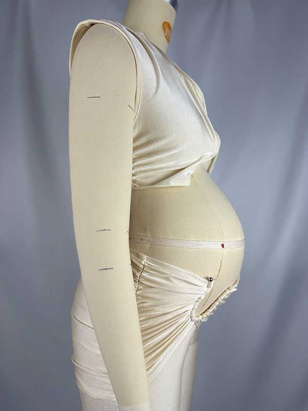Momyknows Apricot Irregular Ruched Crop Wide Leg DIY Two Piece Set Maternity Outfit