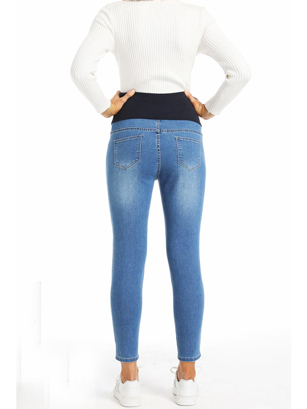 Momyknows Light Blue Ripped Skinny Maternity Jeans