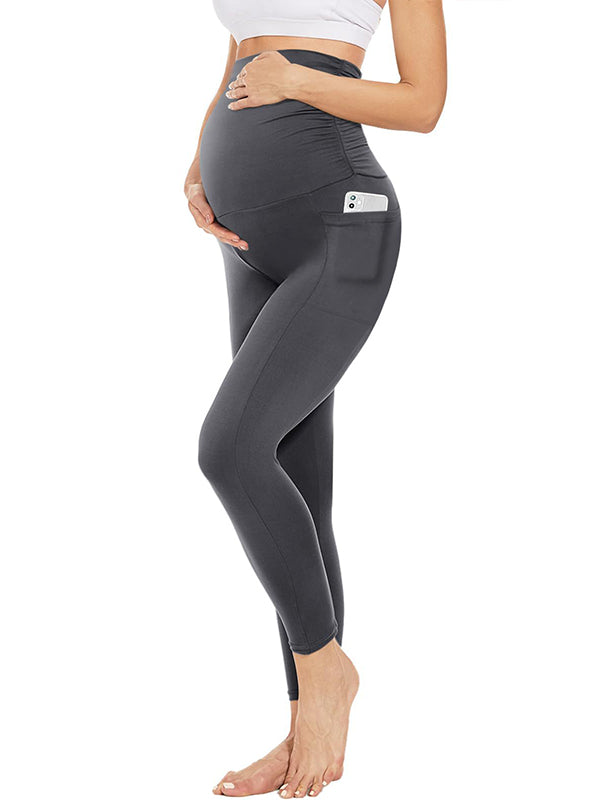 Momyknows Grey Pockets High Waist Daily Maternity Bottoms