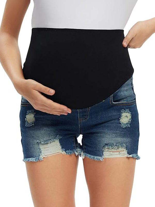 Momyknows Ripped Distressed Denim Over Belly Pockets Pants Casual Maternity Short Jeans