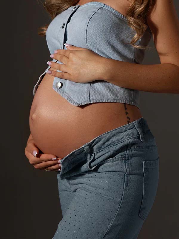 Momyknows Denim Over Belly Pockets Comfy Stretchy Pants Casual Boyfriend Maternity Jeans