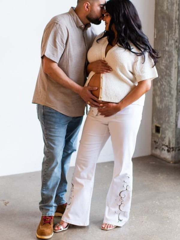 Momyknows White Single Breasted Photoshoot Maternity Short Sleeve T-shirt
