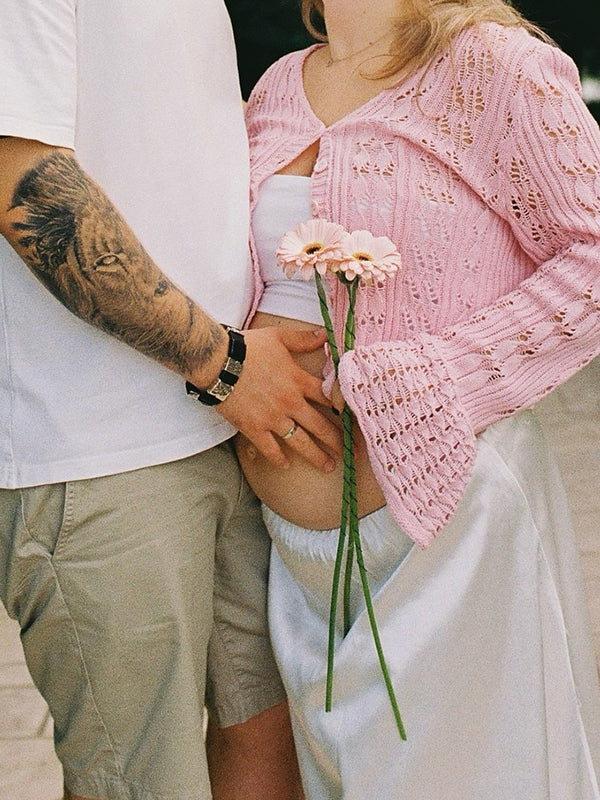 Momyknows Pink Buttons Crochet Cardigan Daily Maternity Tops