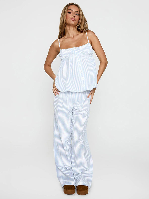 Momyknows 2 Pieces Striped Buttons Daily Baby Shower Maternity Outfit