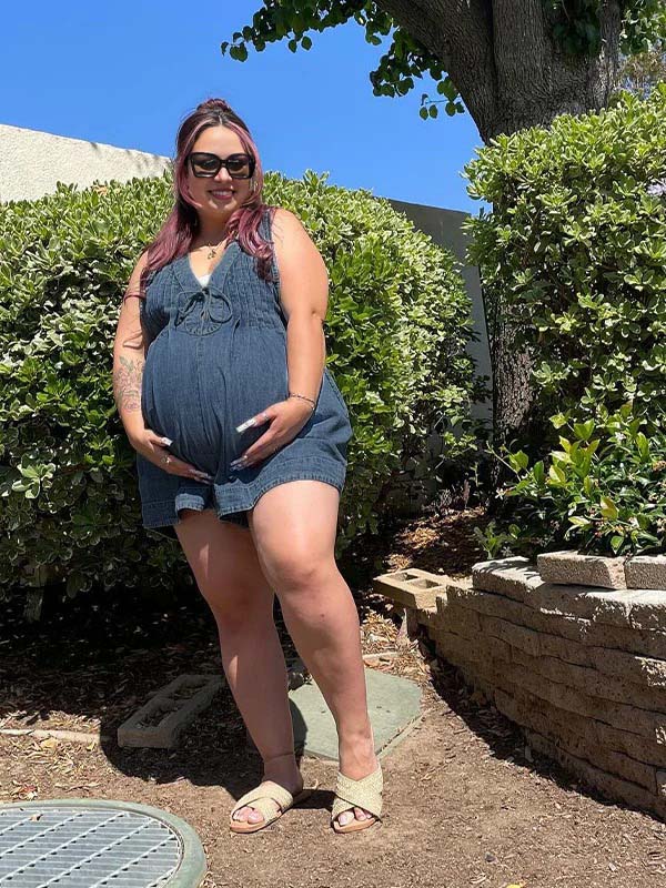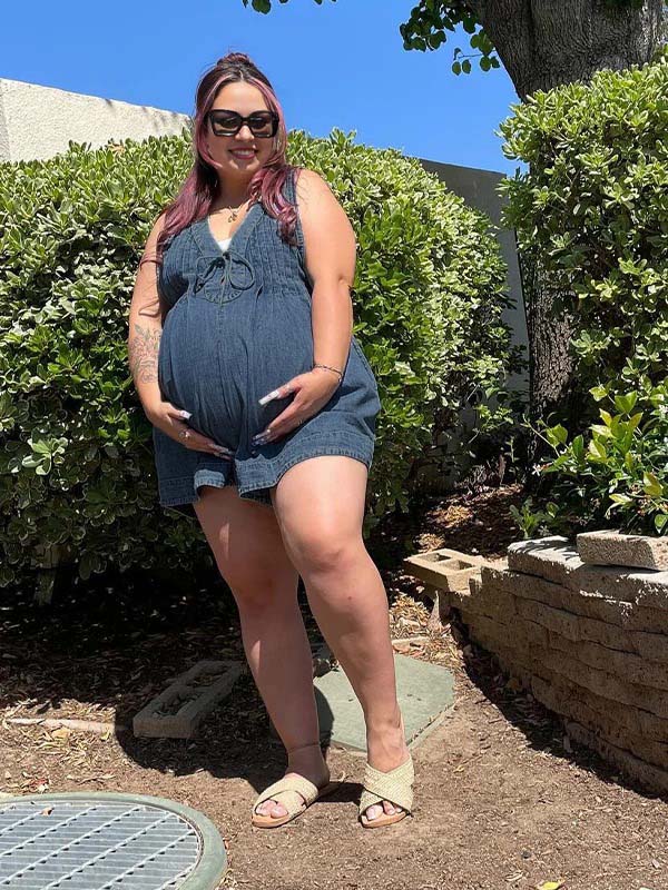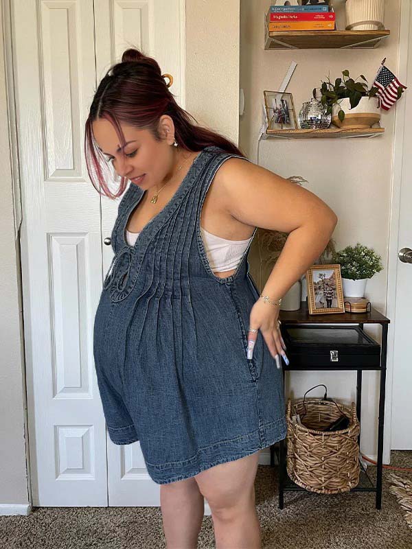 Momyknows Dark Blue Bow Pockets Draped Denim Daily Going Out Maternity Jumpsuit