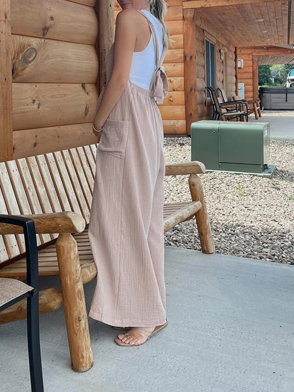 Momyknows Dark Grey Pocket Sleeveless Suspenders Wide-leg Pants Daily Maternity Jumpsuit