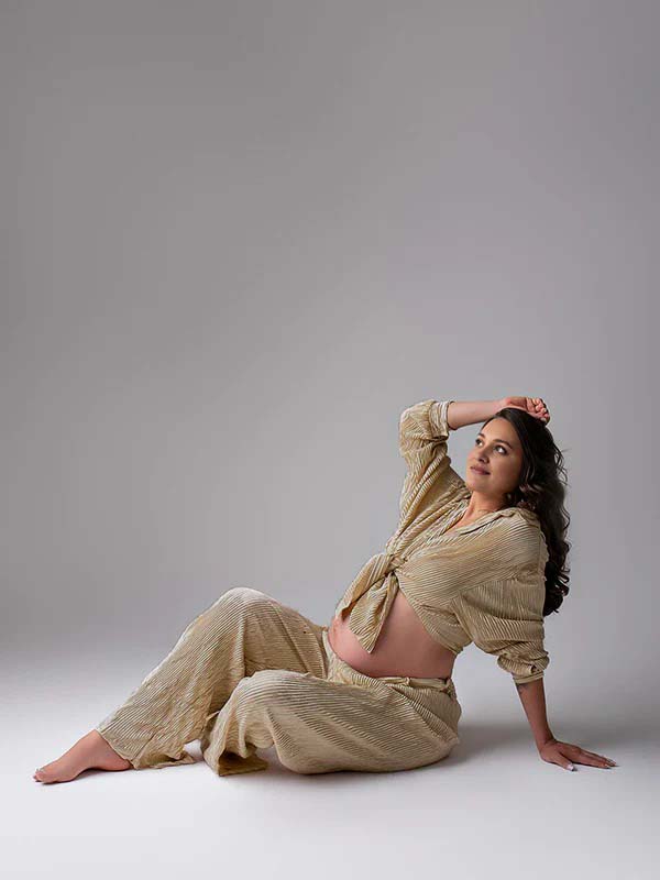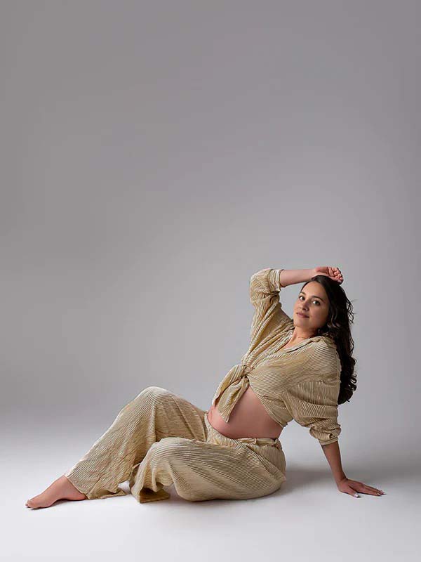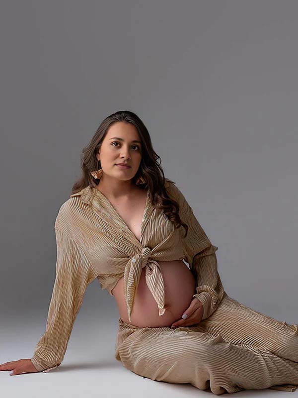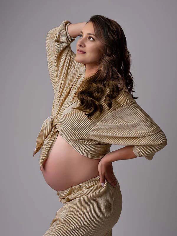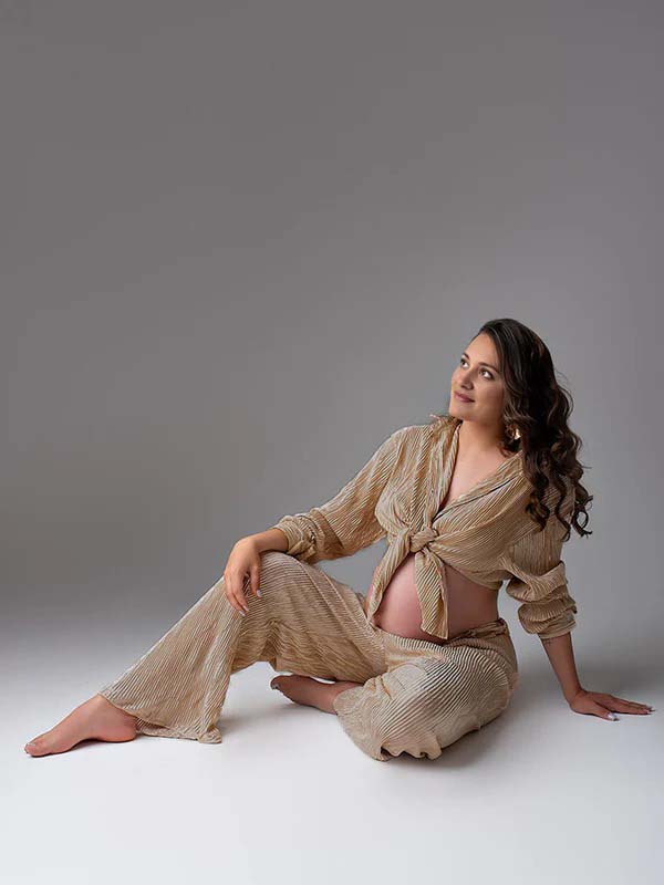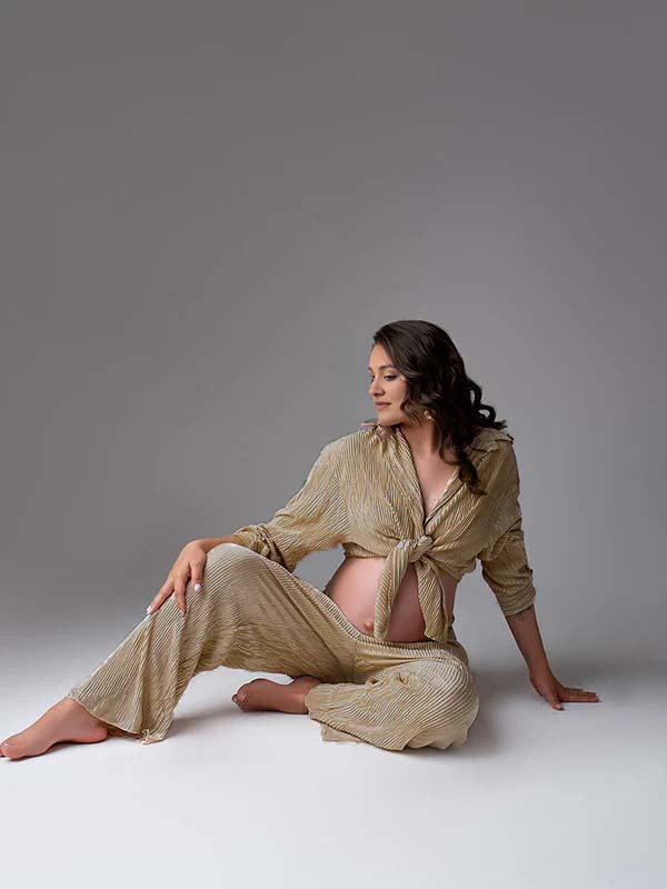 Momyknows Khaki Buttons Pleat Bell Bottom Jeans Daily Two Piece Going out Maternity Photoshoot Homewear