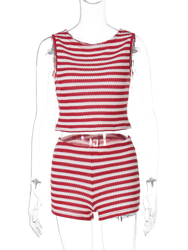 Momyknows Red 2 Pieces Striped Vocation Maternity Outfit