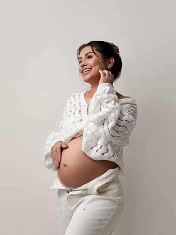 Momyknows White Knitwear Cardigan Single Breasted Photoshoot Maternity Top