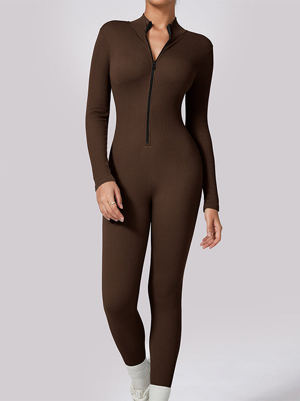 Momyknows Zipper Solid Color Bodycon Daily Casual Yoga Sport Exercise Maternity Jumpsuit