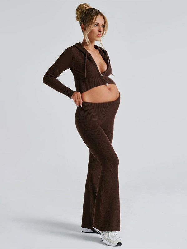Momyknows 2-in-1 Hooded Ribbed Daily Maternity Outfit Pants