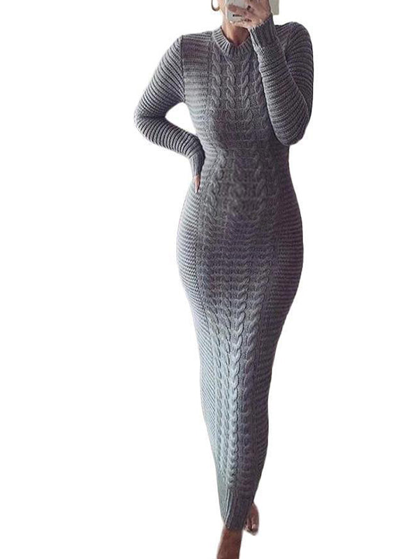 Momyknows Grey High Neck Crochet Maternity Sweater Baby Shower Midi Dress