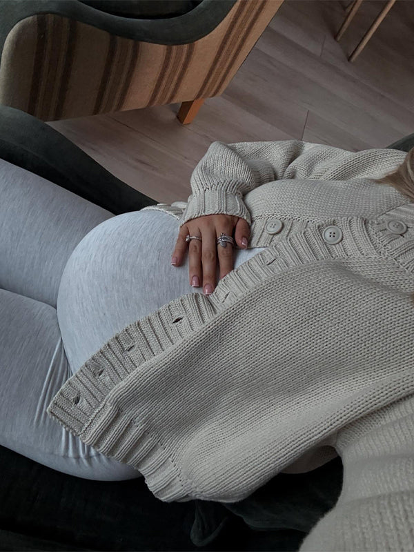 Momyknows Single Breasted Knit Maternity Sweater Cardigan