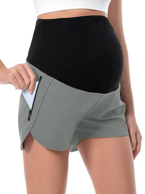 Momyknows Sports Shorts Zip Pocket Maternity Bottoms