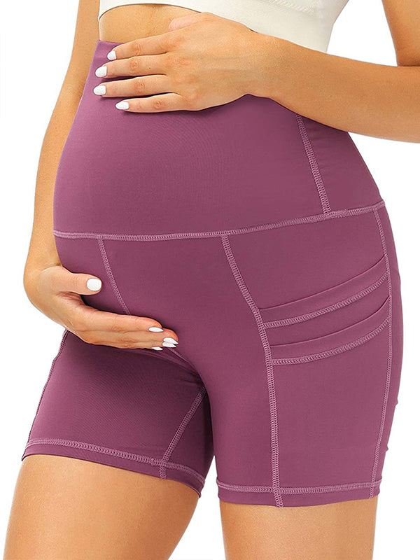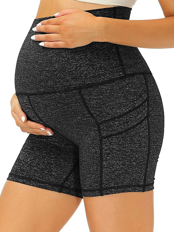 Momyknows Over Belly Pockets Comfy Stretchy Bike Shorts Casual Maternity Yoga Leggings