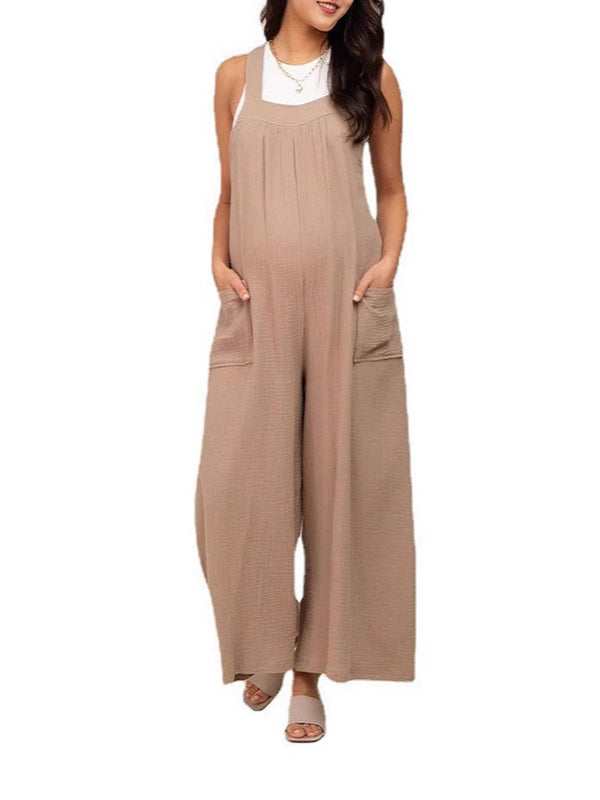 Momyknows lace-up Pockets Wide Leg Pants Daily Going out Maternity Jumpsuit