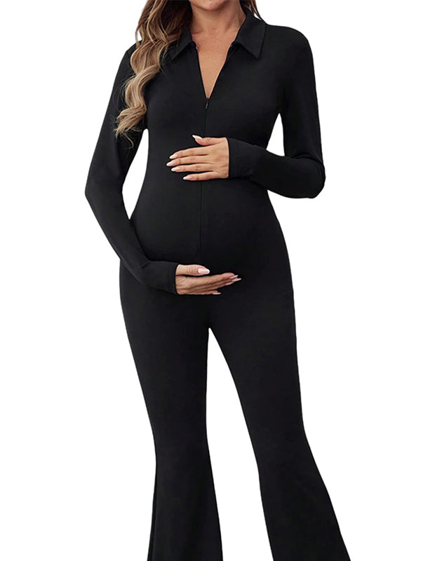 Momyknows Black Zipper Daily Maternity Jumpsuits