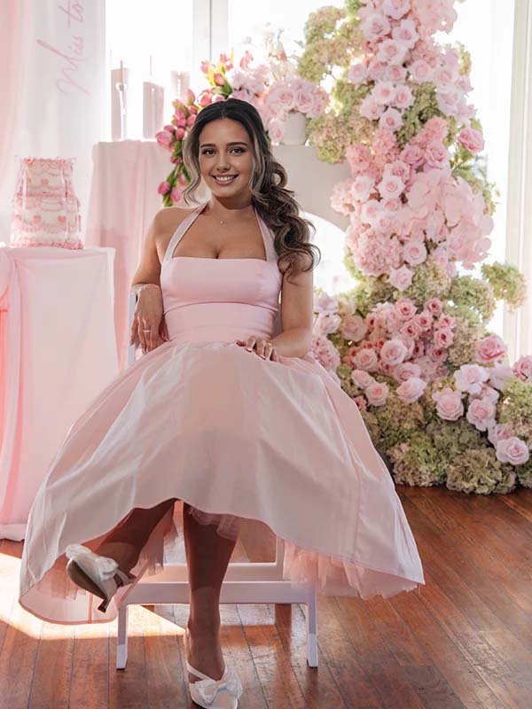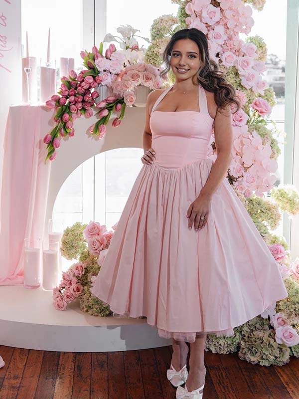 Momyknows Halter Neck Tutu Lace Up Maternity Baby Shower Maxi Dress