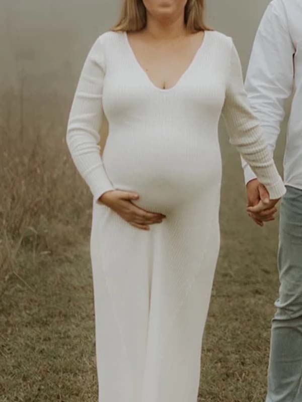 Momyknows Knit V-neck Long Sleeve Bodycon Basic Maternity Maxi Dress