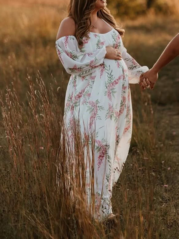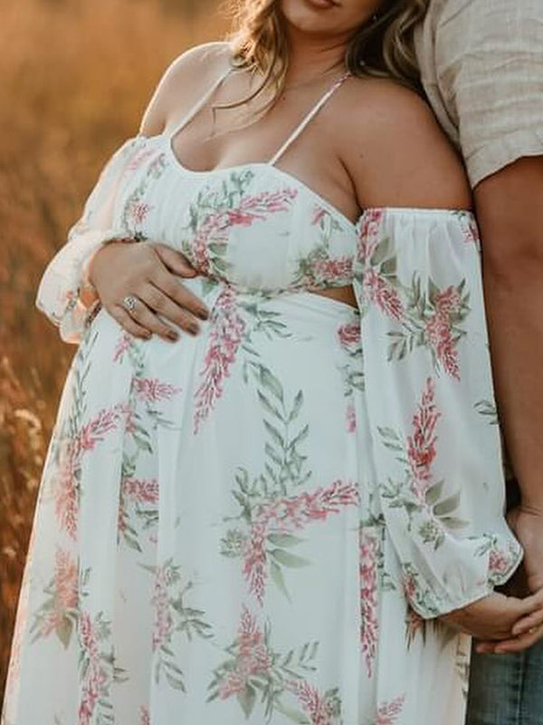 Floral Cut Out Backless Maternity Photoshoot Plus Size Maxi Dress