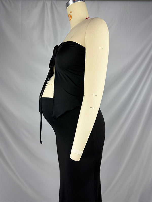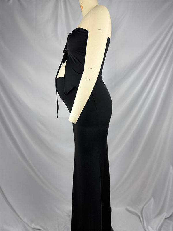 Momyknows 2-in-1 Tie Slit Mermaid Photoshoot Maternity Maxi Dress