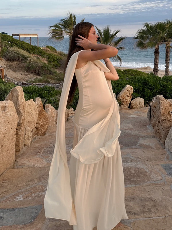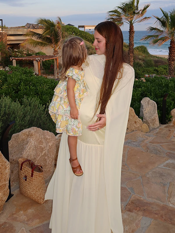 Momyknows Apricot Mesh Cami Big Swing Cape Elegant Maternity Maxi Dress