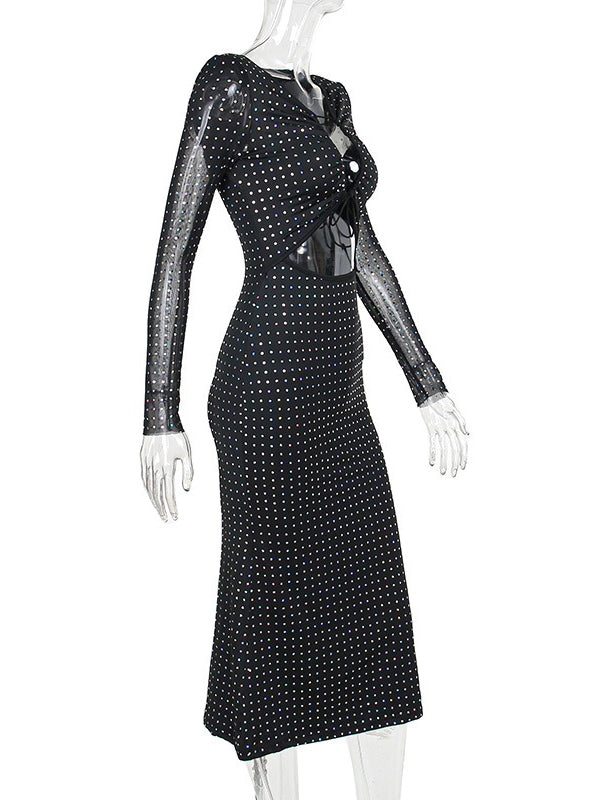 Momyknows Black Sparkly Cut Out Tie Sheer Bodycon Elegant Photoshoot Baby Shower Maternity Maxi Dress