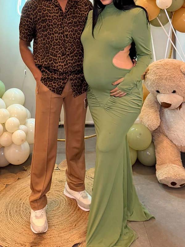 Momyknows Cut Out Ruched Backless Mermaid Elegant Maternity Maxi Dress