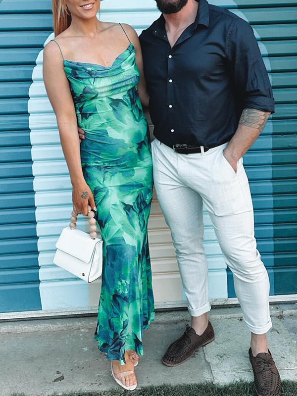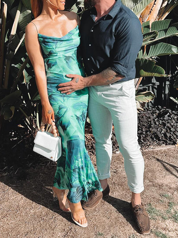 Momyknows Emerald Green Stamp Duty Spaghetti Strap Open Back Vacation Beach Maternity Photoshoot Maxi Dress