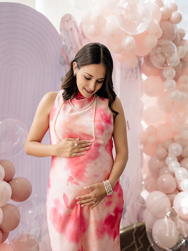 Momyknows Flower Color Round Neck Stamp Duty Maternity Baby Shower Maxi Dress